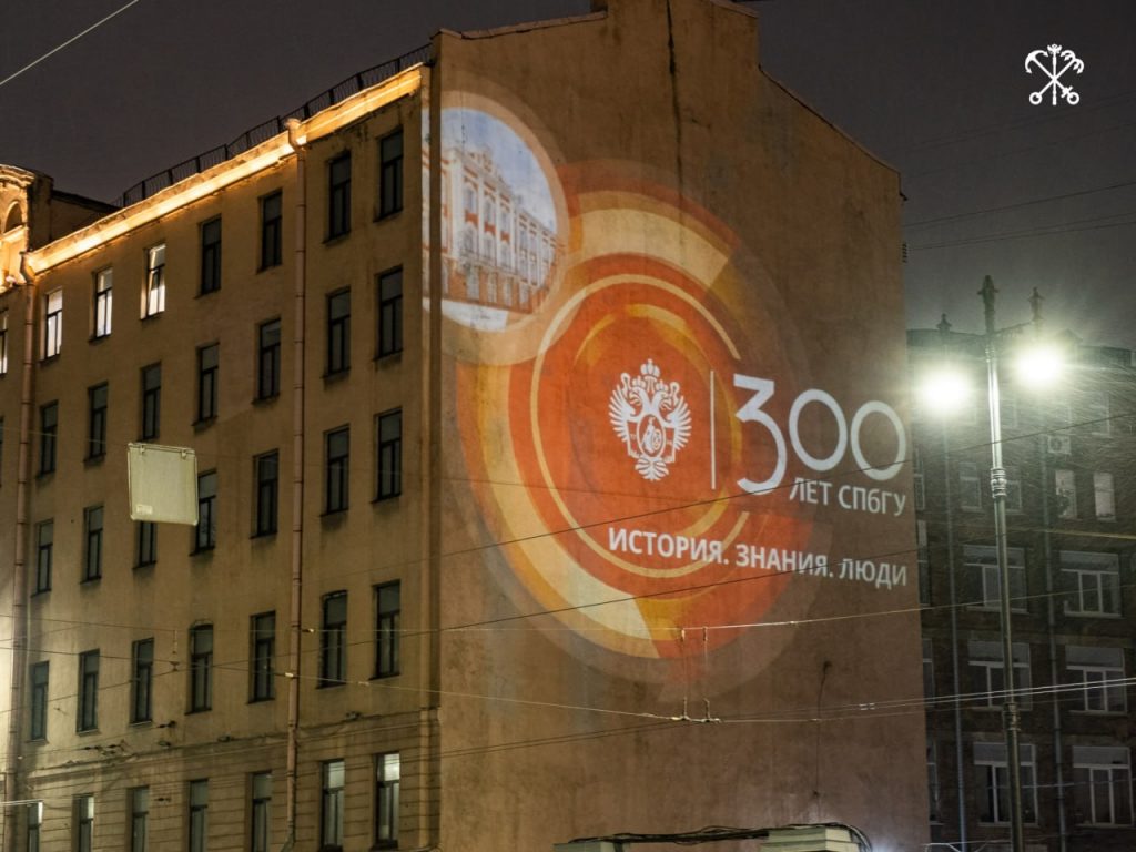В честь 300-летия российской науки и Санкт-Петербургского государственного университета здания нашего города украсили световые проекции.